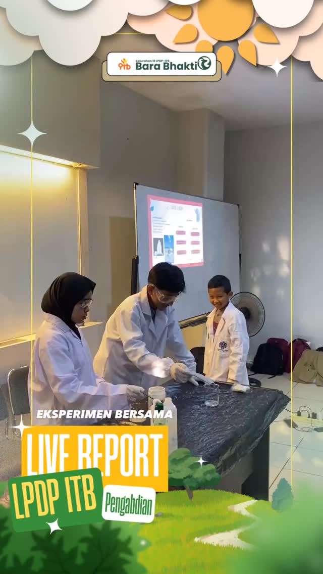 Setelah puas berkeliling, giliran otak dan tangan mereka yang diasah. Kami mengajak mereka ke laboratorium untuk mencoba langsung eksperimen kimia sederhana. Dengan bimbingan kakak-kakak dari ITB, mereka belajar tentang reaksi kimia yang menghasilkan warna-warna menakjubkan dan gelembung-gelembung unik. Seru! Reaksi dan decak kagum terdengar di seluruh ruangan. Kegiatan ini tidak hanya menghibur, tetapi juga menjadi cara menyenangkan untuk belajar sains.